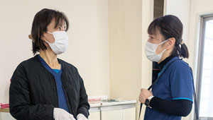 ゆっくりと患者様・ご家族様とお話しをしながら、病状や身体の観察(体温・脈拍・呼吸・血圧など)を行います。